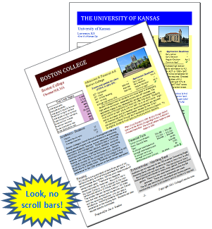 The pages are spiral bound in an attractive report customized with the student's name and delivered via Priority or Overnight mail. These colorful, vivid reports help get students moving on the arduous process that is college admissions. (Some of our clients even admit to getting a little bit excited.)